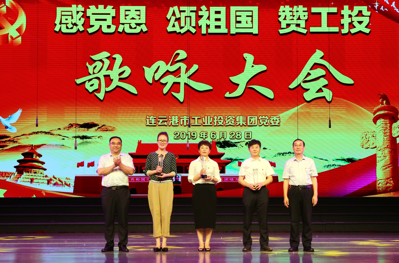 “风在吼,马在叫,黄河在咆哮……”嘹亮的歌声在市艺术中心舞台上响起, 6月28日下午,集团公司2019年“感党恩、颂祖国、赞工投”大合唱比赛在此隆重举行,灌西公司百人合唱团获得二等奖,集团党委书记、董事长杨龙为灌西合唱团颁发奖杯。