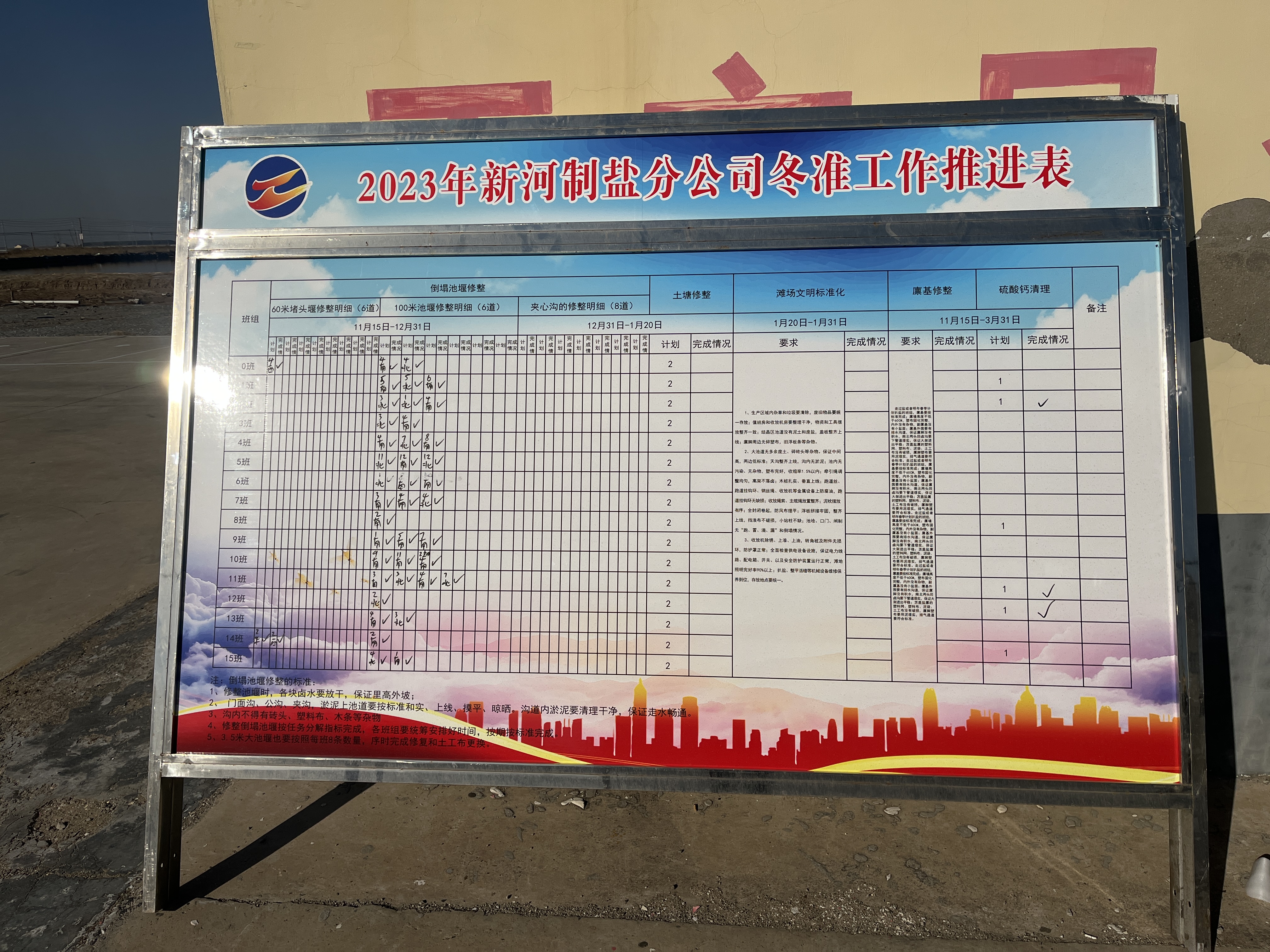 冬季是日晒制盐收储卤水、扒土塘、整理滩场文明的最佳时期,也是为2024年工作起好头、迈好步的关键时期,自冬准工作开展以来,新河制盐分公司制定冬准工作推进表,挂图作战按时推进冬准进度。