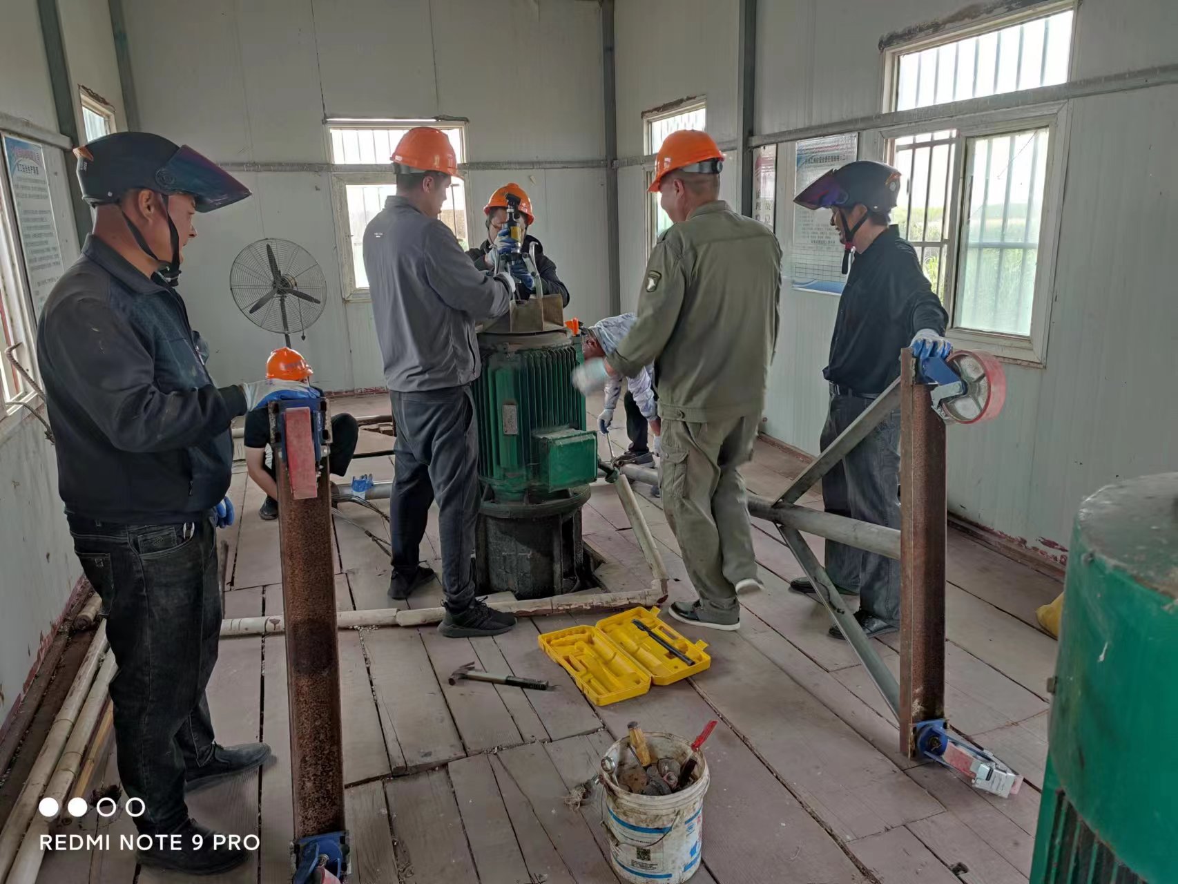 由于近期稻田用水较多导致扬水站其中一台机器线路受损,无法正常工作,影响正常供水。明威公司机修班组在组长程洪连带领下,立即启动了应急抢修预案。
