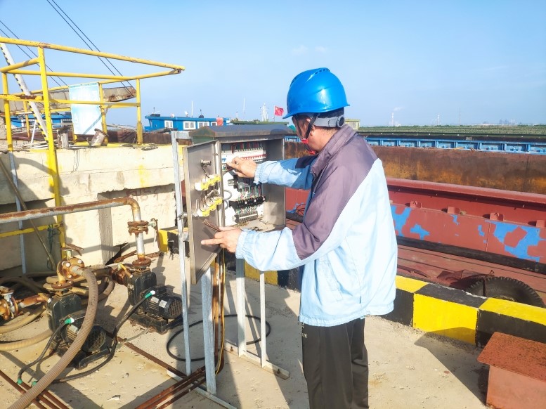 连日来,宵洋物流公司根据本单位的实际情况,开展安全生产大检查,总经理靳国祥要求广大员工,牢记安全意识,守牢安全底线,当下既是生产旺季,又是用电高峰期,存在安全隐患,对用电安全要进行全面拉网式检查。规定码头、集装箱上的埋线和裸露的外线,要用穿线管套好,规范地安装在墙上,配电箱内配件要逐一检查,电瓶车充电要使用集中充电桩,员工进入工作区域必须带好安全帽,做好自身防护。