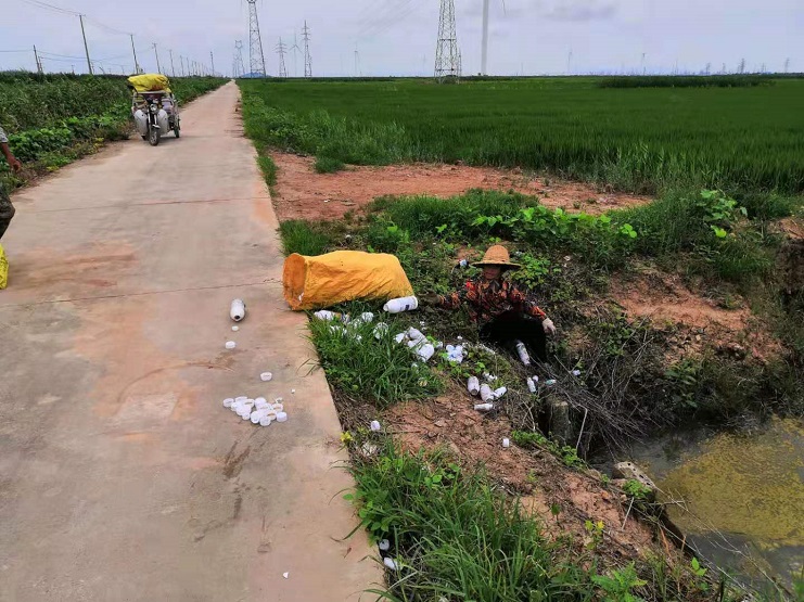 近期正是稻田喷洒农药的高峰期,许多承包户将喷洒稻田的药瓶用完后随意丢弃在田埂边、路边,这不仅会污染居住环境,影响土壤、水体的生态平衡,还会对周边池塘养殖安全造成一定的隐患。为此,该公司专门成立“农田卫士”志愿服务队,深入田间地头捡拾沟渠废弃农药瓶、塑料袋、漂浮物等垃圾,进行集中无害处置。与此同时,加大宣传力度,使广大承包户认识到乱扔废弃农药瓶的危害,劝导承包户不要随意丢弃农药垃圾,积极参与到消除农药瓶污染的行动中去,形成全民动员、人人参与的良好氛围。