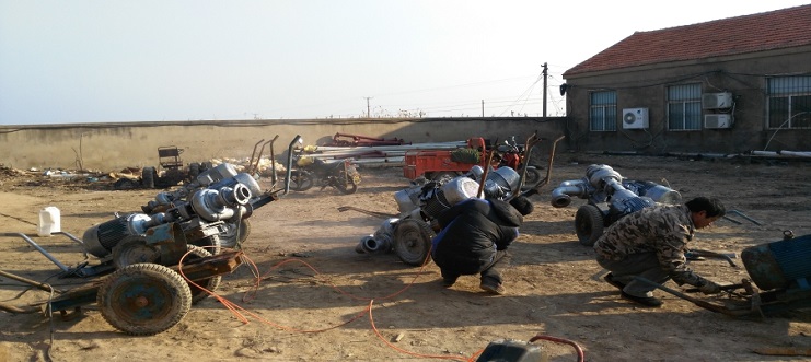 为确保一月底前完成扒盐设备维护保养工作,日前,机械设备服务中心召开班组骨干会议,进一步明确维修任务,细化、量化到人头,注重维修安全,向目标冲刺。该中心机修人员能不畏严寒,抢时间维修保养扒盐设备,目前10台带卤扒盐唐30、6台破碴唐30、10台扒盐大架已全部维护结束。20台盐泵已进入上漆保养阶段。(下图为设备上漆保养)