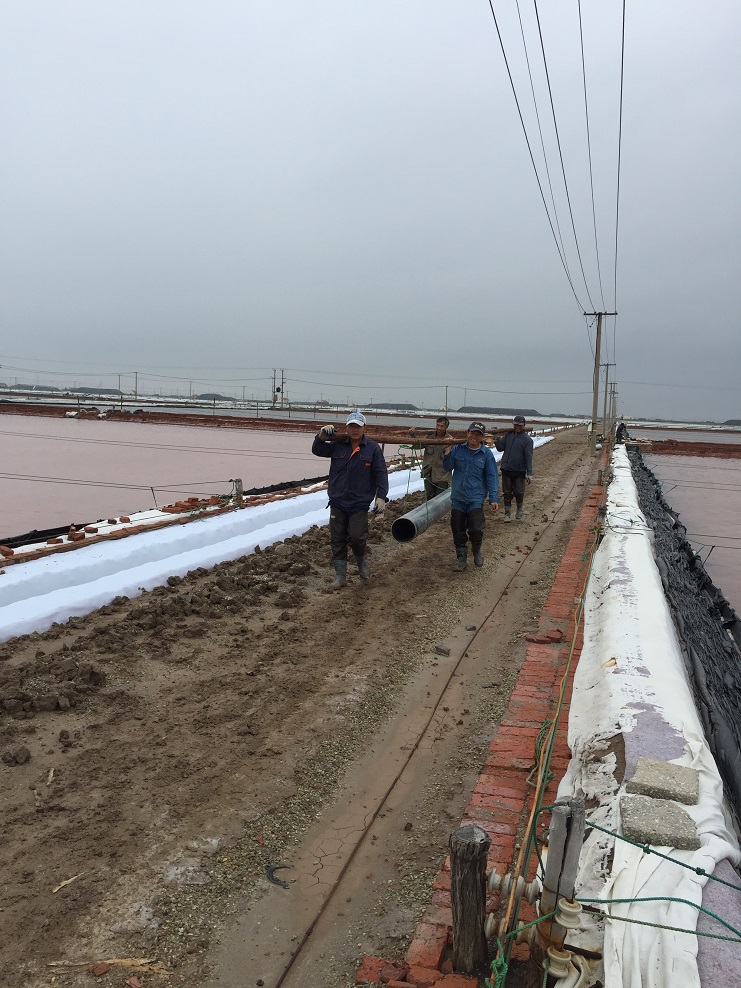 近日虽然阴雨连绵,给盐业生产带来了不利影响,但因为连日降雨使得土层松软,却给新河制盐“天沟”工程创造了有利时机,新河制盐分公司员工不等不靠,上下齐心,充分发挥盐场主人翁意识,用自己的实际行动为实现全年目标贡献力量。(新河制盐 邱利民)
