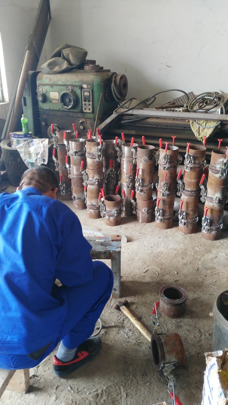 为提高扒盐管道安装速度,减轻盐业工人劳动负荷,连日来,机电服务公司制作人员认真进行管道快接头制作,他们分工负责,2人专门焊接,4人进行管道接头安装,预计本周五一台机组63节管道,4个弯头制作完成,下周进行实际试用。(机电服务公司)