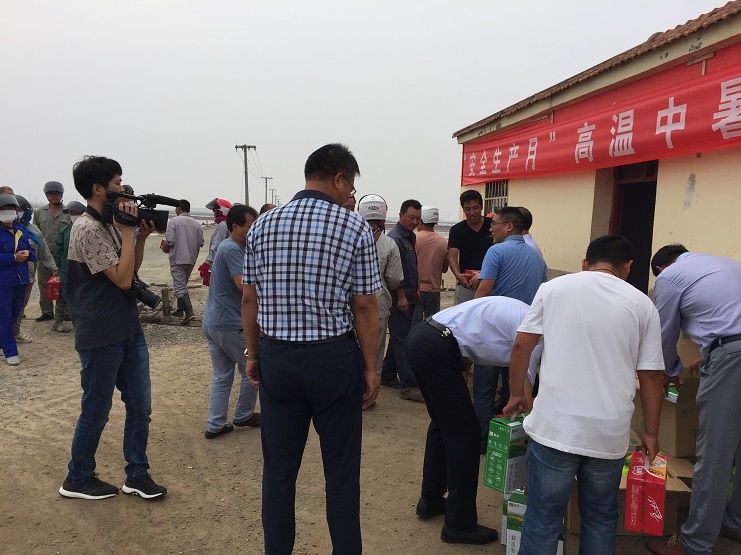 7月18日下午,集团公司总经理胡建明、副总经理张其海一行深入日晒制盐公司走访慰问一线职工,为坚守在高温下一线的员工送去“清凉”和组织的关怀。慰问中,集团总经理胡建明、工会主席李岚琴为生产一线员工发放了绿豆、白糖、八宝粥等防暑降温用品并详细询问了一线员工的生产生活状况。对一直坚守在工作一线的员工表示了深深的感谢。谈起这次夏日送清凉活动,集团总经理胡建明的话语中无不流露着对一线员工的敬意和亲切关怀,活动结束后,总经理胡建明、副总经理张其海在投资公司董事长王德志等人的陪同下参观了九班的安全班组建设情况,并对新河制盐的安全班组建设成果予以肯定。(新河制盐 邱利民)