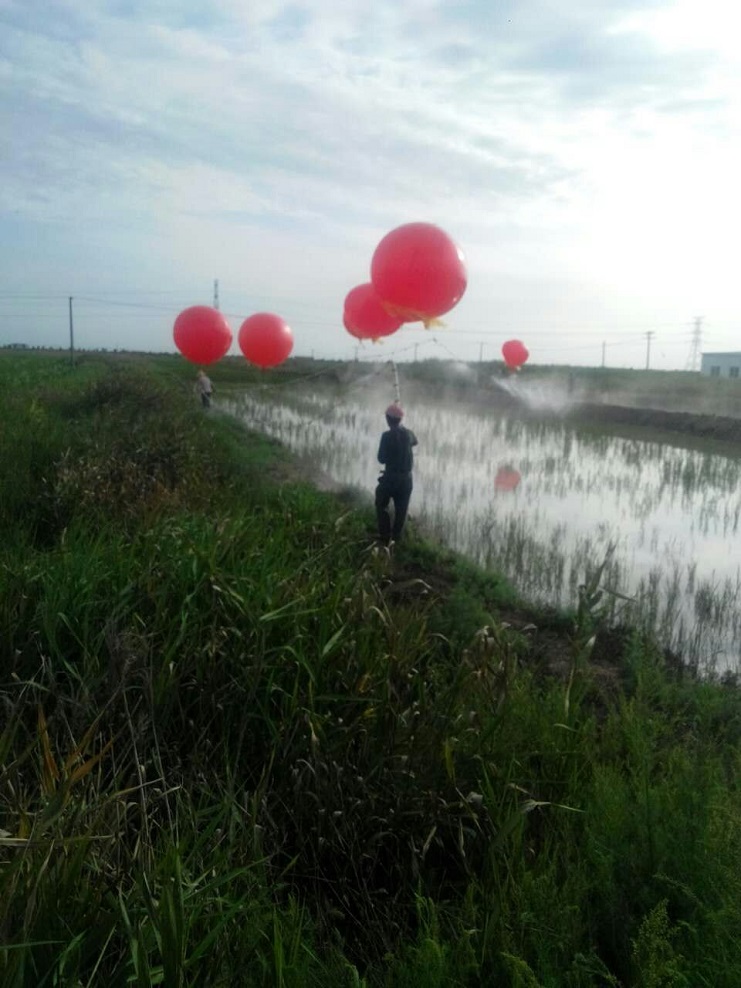 实业公司农业分公司加大试验田管理力度,确保水稻正常生长。 分公司埒南大阜二圩水稻现在正值灌浆期,稻瘟病、纹枯病、钻心虫等各种病虫害随之而来。近日,为减少人为对水稻的损坏,农业分公司利用新型技术,采取气球洒药的方法,对稻田进行喷洒,将防虫治病工作做到实处。(实业公司)