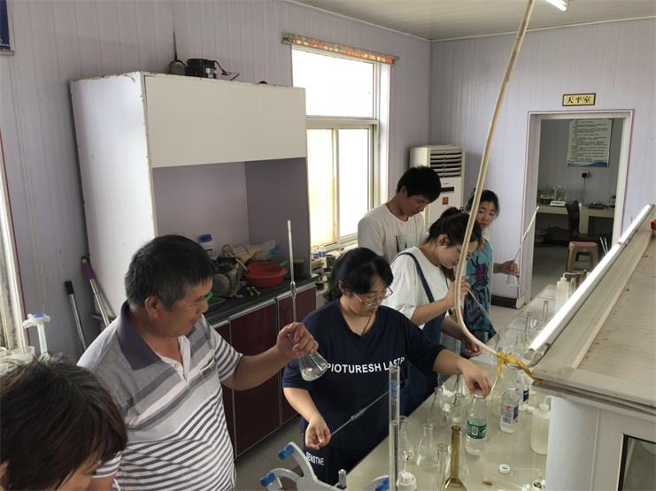 近日来,天气晴好,是除硫的好时机,新河,埒南制盐公司都在进行紧张的除硫工作。 矿卤除硫是日晒制盐的重中之重,是原盐生产之根本!而化验室则承担着原料取样的化验重任!化验团队的成员们每天在从进入化验室的那刻起,就开始一刻不停的忙碌起来,称重、测量、记录、分析、计算、书写记录、编制化验报告……各项工作有条不紊,依次进行。 尽管化验室里弥散着刺鼻的化学药水味道,但化验员们却依然尽职尽责,一忙就是半天!只为了更好的服务于公司,确保生产能够安全稳定地运行!(生产服务公司王静)