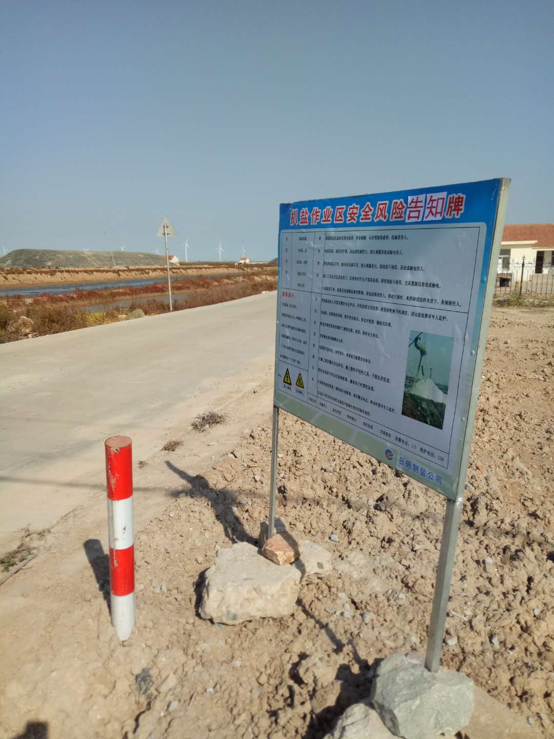 市、县安监局领导在对新河制盐分公司生产场所进行安全督查时指出扒盐现场缺乏闲人免进的标志牌、大廪没有禁止攀爬,防摔伤标志牌等,10月29日上午,新河制盐分公司协同投资公司安全部门进行了整改,首先在道路交通路口树立扒盐作业区安全风险告之牌,在扒盐现场树立扒盐作业区安全风险辨识牌、当心触电、当心机械伤人、廪高危险,禁止攀爬标志牌,其次在九班变压器用围栏,张贴有电危险、禁止攀爬标志,进一步提高了职工的安全系数,增强了员工安全操作技能,为企业下一步的安全生产奠定了坚定的基础。(江德前)