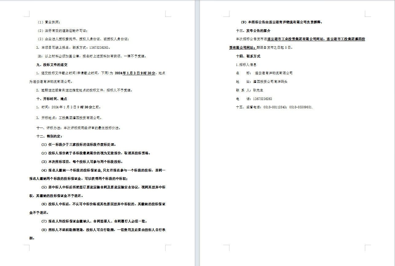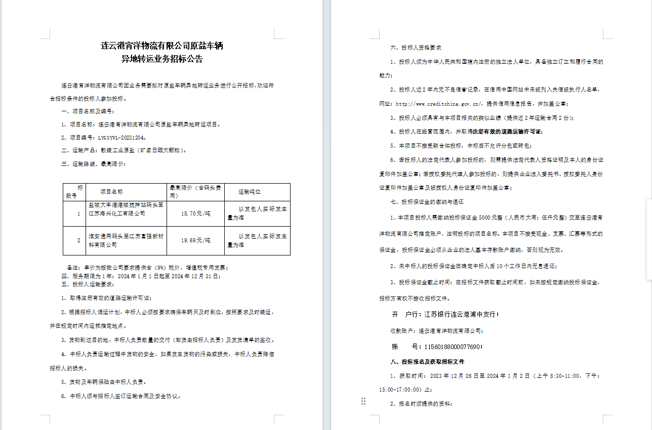 连云港宵洋物流有限公司原盐车辆异地转运业务招标公告