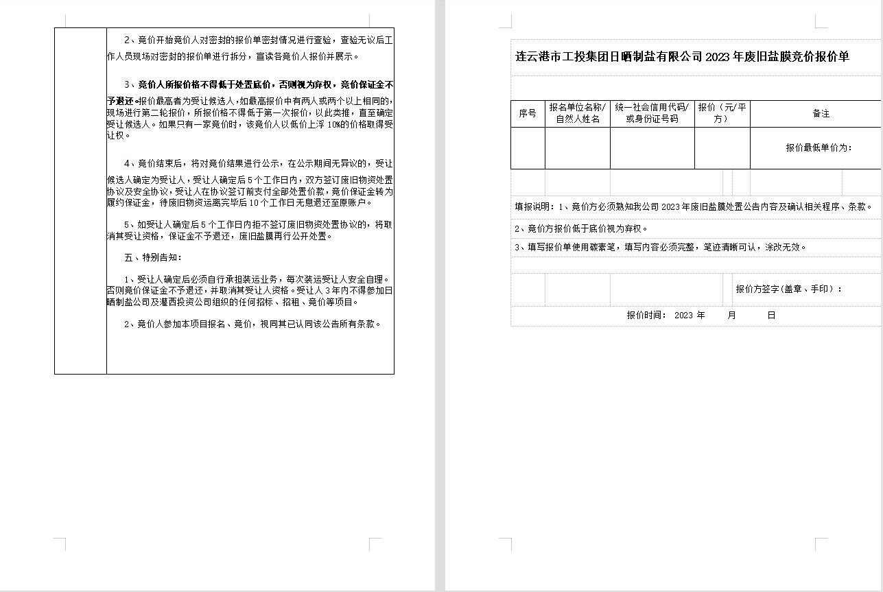 连云港市工投集团日晒制盐有限公司废旧盐膜处置公告