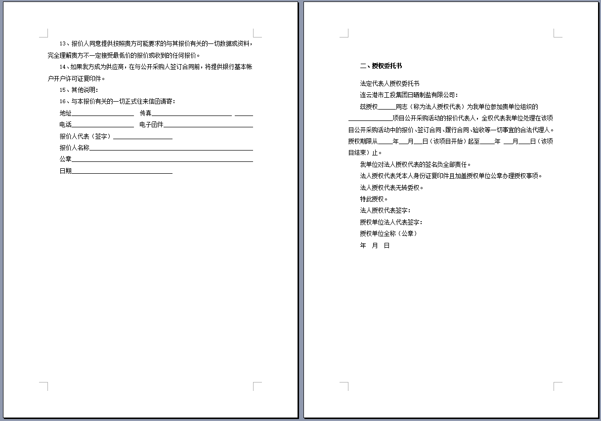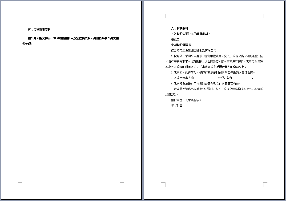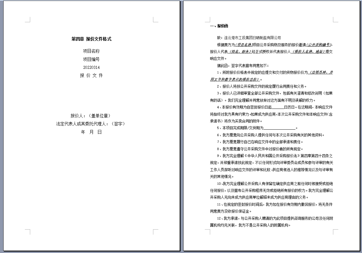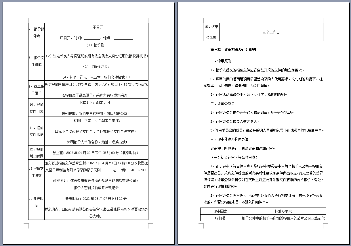 连云港市工投集团日晒制盐有限公司管道采购项目 公开采购文件