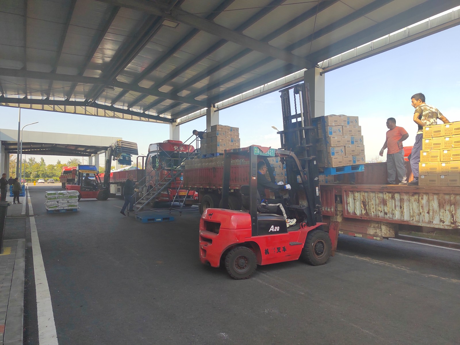 公司进入“大干100天,冲刺双二零”关键阶段,装车量激增,一辆辆卡车在厂区内排队待装。时间紧,任务重,面对巨大的装车压力,装卸班组充分利用旋转叉车特性,开展分区分组装车作业,极大减少了人力成本和劳动强度,提高了工作效率,为确保装车任务的顺利完成提供有力保障。(徐丹丹)