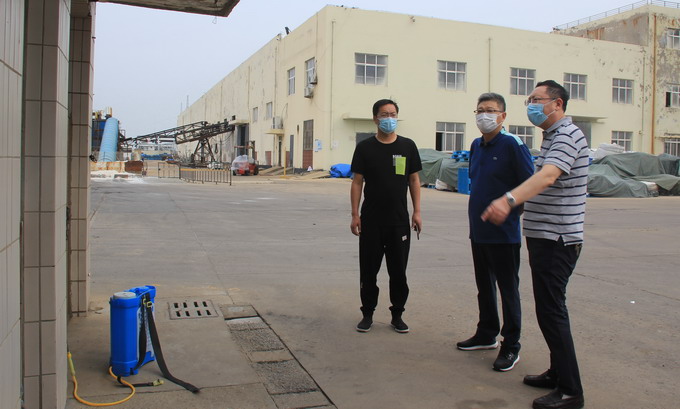 8月10日下午,集团公司总会计师匡友本到我公司检查指导疫情防控工作,我公司党委书记、董事长、总经理朱桂玉,党委副书记、纪委书记、工会主席曹开明陪同。
