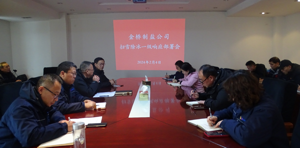 公司副总经理凌家佳传达了《集团公司气象灾害应对工作提示单》要求。公司党委书记、董事长、总经理田磊宣读《公司扫雪除冰事故专项应急预案》,并就启动扫雪除冰一级响应工作提要求:要提高认识、统筹推进,加强值班值守,切实提高冰雪清除工作的效率和质量;要统一思想、奋力担当,履行好安全生产责任,全力做好融雪盐市场保供工作。