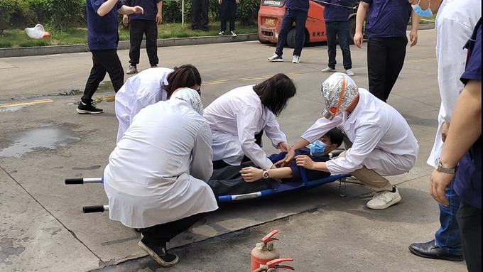 演练分为火灾应急疏散、火灾应急救援、有限空间应急救援三个部分展开。在火灾应急疏散演练中,设定三楼会议室为模拟火灾现场,人员2分钟内从指定逃生路线规范、有序、迅速撤离到了安全地带;火灾事故应急救援和有限空间应急救援分别模拟纸箱库着火及地龙有害气体窒息,分信息报告、启动应急响应、现场警戒、医疗救护、事故抢险等各处置环节,整个演练紧张有序,过程流畅,达到检验应急预案的可行性和提高应急救援人员的应急处置能力的效果,为完善我公司应急预案提供实践依据。