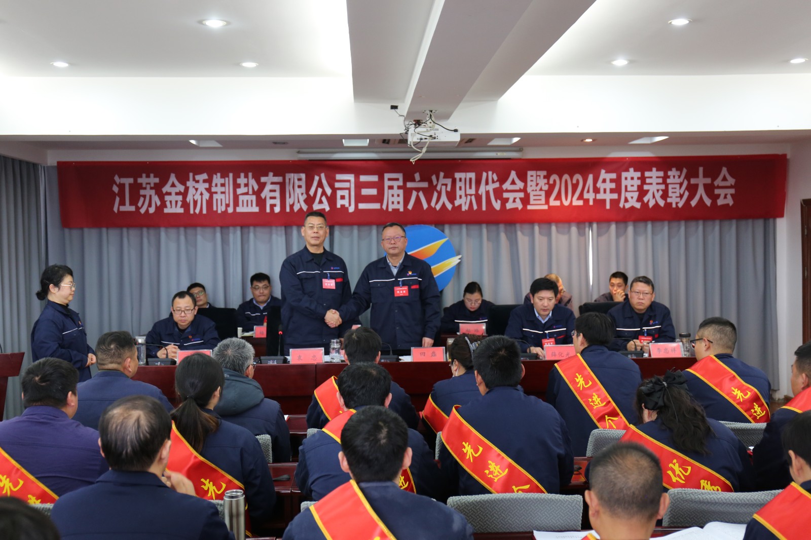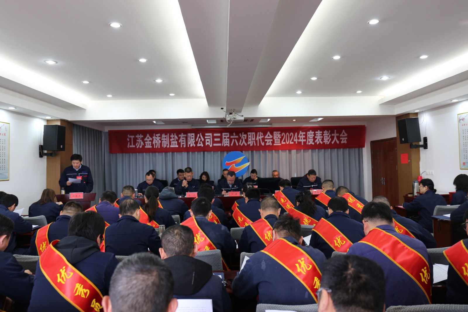 1月23日,金桥制盐公司隆重召开三届六次职代会暨2024年度表彰大会。来自公司各条战线的45名代表忠实履行职责,积极献计献策,共商发展大计。公司党委书记、董事长田磊作讲话。公司常务副总经理薛化光作《工作报告》。公司党委副书记、纪委书记、工会主席袁忠主持大会。