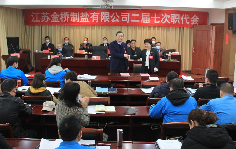 大会签订了《2020年度集体合同》、《2020年度经营认标责任书》,与会代表认真审议通过了总经理工作报告,通过了大会决议、有关方案和意见。加工盐车间、包装盐车间、销售部依次作了表态发言。大会表彰了第八届“金桥杯”劳动竞赛、2019年“大干四季度”劳动竞赛的先进单位、先进部室、先进班组和先进个人。(金宣)