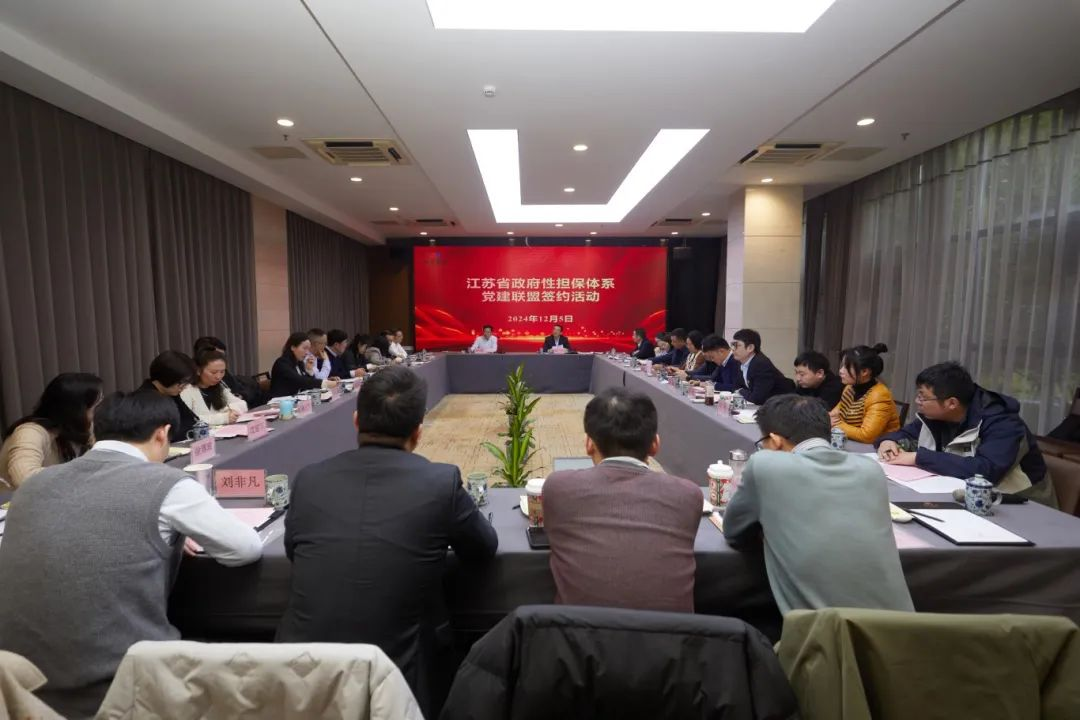 为深入贯彻落实党的二十大和二十届二中全会、三中全会精神,以高质量党建引领我省政府性担保体系高质量发展,推动党建工作与业务工作互融互促,2024年12月5日,江苏省融资再担保有限责任公司在南通市发起成立我省政府性担保体系党建联盟,首批邀请全省13个设区市的14家重点政府性担保机构集中签约。