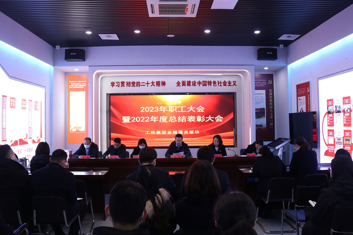 2月8日上午,工投金融服务板块隆重召开2023年职工大会暨2022年度总结表彰大会,全体在岗员工参加大会。党支部书记、董事长徐兵主持会议。