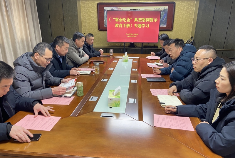 为认真贯彻全市国有企业警示教育大会精神,充分发挥反面典型的警示震慑效应,2月4日下午,公司纪委组织全体班子成员及关键岗位人员,开展“靠企吃企”专题警示教育会议,对《“靠企吃企”典型案例警示教育手册》进行全面学习。