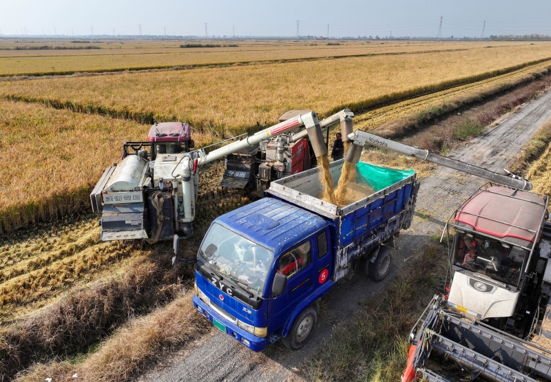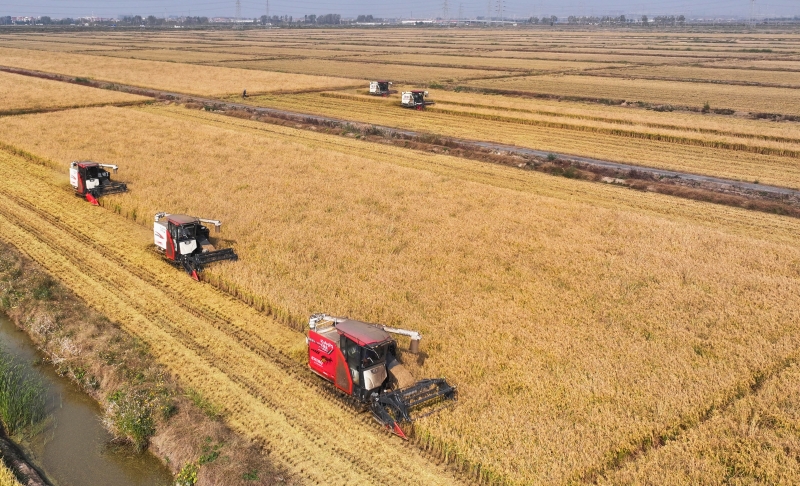近日,青口投资公司万亩耐盐碱水稻收割正如火如荼展开,大地上洋溢着丰收的喜悦,频频传来喜讯。今年秋粮丰收的背后藏着三个重要的“密码”。