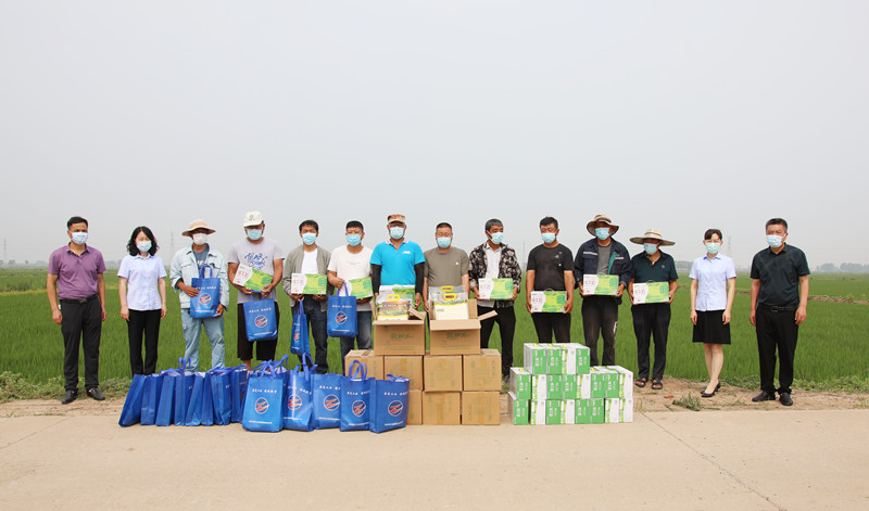 7月19日上午,骄阳似火,集团纪委书记汪群到青口公司慰问奋战在一线的条田工、扬水工等, 并把绿豆、白糖、牛奶等“清凉礼包”递到他们手中,为他们送去集团党委的关心关怀和工会组织的关爱。青口公司党委书记、董事长、总经理史祥平,党委副书记、工会主席梁永陪同慰问。
