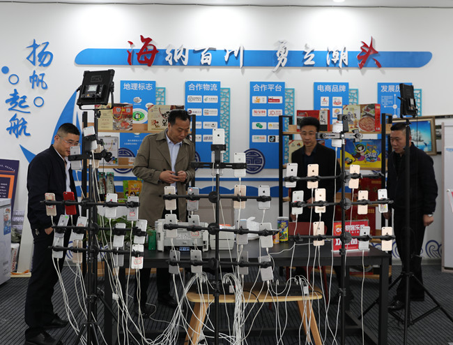 调研过程中,副总经理许太冬详细听取了海前村电商示范村网红直播运行模式及相关配套设施建设情况,参观了电商商品展销厅、网红直播室、后台剪切室等电商运营工作室。