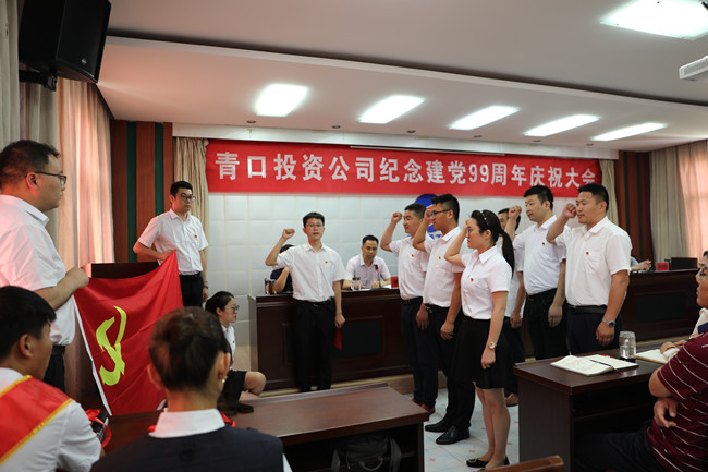 为了庆祝中国共产党建党99周年,继承和发扬党的光荣传统,彰显基层党组织的战斗堡垒作用和党员先锋模范作用,6月28日上午,青口投资公司隆重召开纪念建党99周年庆祝大会暨“七一”表彰大会。会议由党委副书记、工会主席梁永主持,全体领导班子成员、各单位党政负责人、优秀党员代表、机关全体管理人员参加会议。