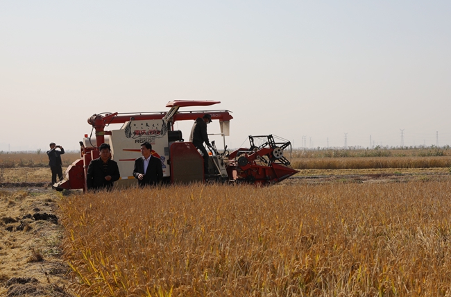 11月4日上午,晴空万里,在喜庆的鞭炮声和收割机的轰鸣声中,公司万亩水稻正式开镰,一年一度的收割任务全面展开。党委书记、董事长胡传法、副总经理周绪祥到场指导。