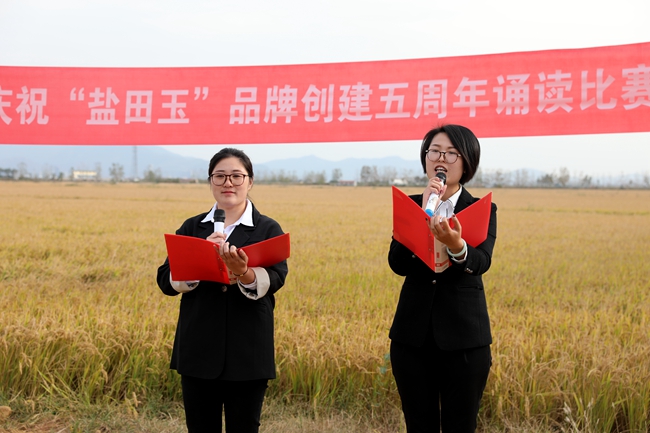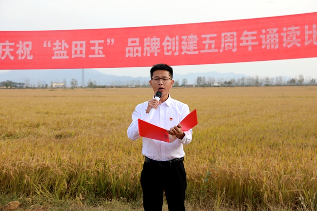 金秋十月,稻浪播香,又到一年丰收季。为庆祝“盐田玉”品牌创建五周年,营造企业文化氛围,展现职工群众健康向上的精神风貌,10月25日下午,投资公司于万亩稻田间举行庆祝“盐田玉”品牌创建五周年诵读比赛。公司党委委员、副总经理周绪祥,各单位党政工负责人、机关全体管理人员,大新农场条田工,米业营销中心生产销售团队参加活动。