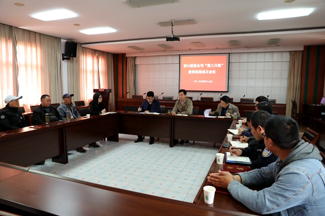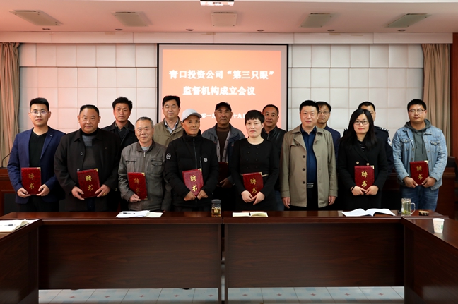 4 月 19 日上午,青口投资公司在四楼会议室召开“第三只眼”监督机构成立会议。公司党委书记、董事长胡传法,党委委员、分管领导宋晟晔及受聘的 12 名监督员参加了会议。