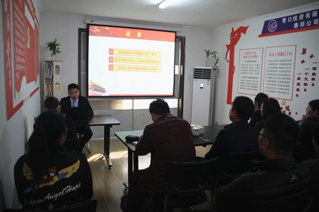 宣讲让泰祥公司支部宣传了习总书记系列重要讲话精神和治国理政新理念、新思想、新战略,鼓舞泰祥公司广大党员、干部群众凝聚思想共识,汇聚智慧力量,主动担当责任,以实干推动发展,以实干赢得未来。(杨 笑)