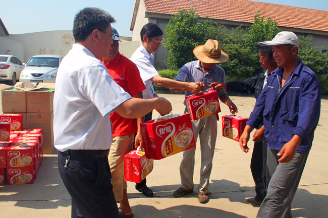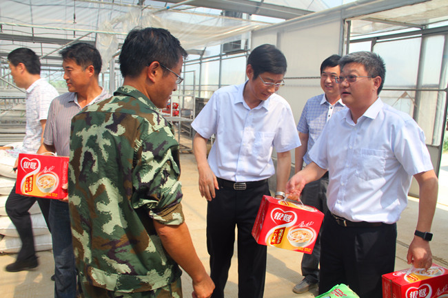 7月20日上午,集团副总经理张其海、总会计师匡友本来我公司大新农场、生态种养中心走访慰问拼搏在农业种养一线的基层职工,为他们送上绿豆、白糖、牛奶及八宝粥等防暑降温品。投资公司董事长、党委书记胡传法、党委副书记、副总经理史祥平、副总经理周绪祥陪同慰问。