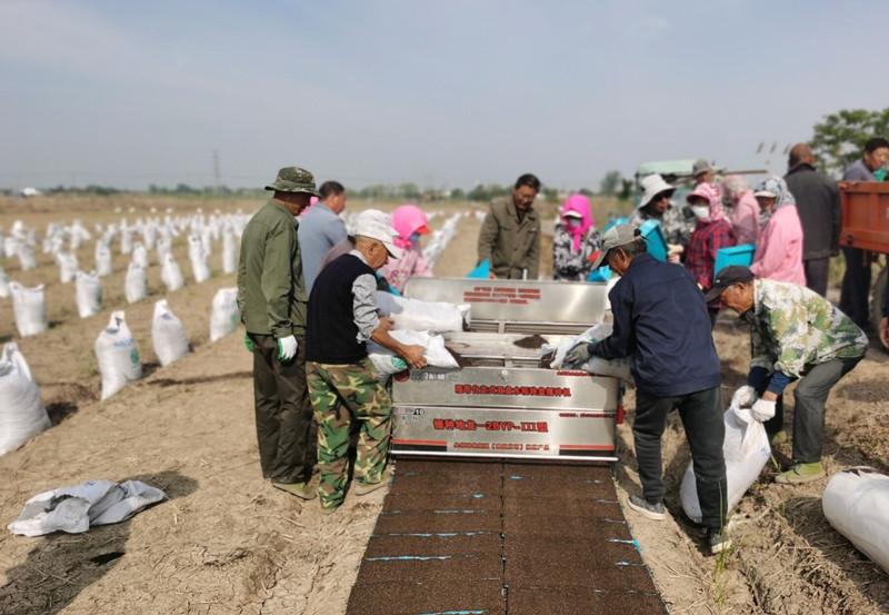 5月9日,大新农场全面启动育秧作业,工人们在水稻育秧播种机两侧,分工有序地进行流水线育秧,确保农业生产开好局、起好步。据统计,今年自营农田共6228亩,预计需播机插秧27万盘。(刘杨)