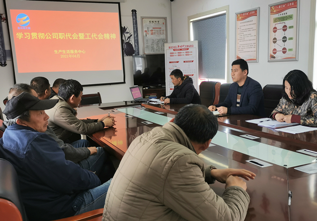 4月13日,生产生活服务中心组织职工传达学习投资公司二届一次职代会暨第二次工代会会议精神,结合“岗位建新功、创效争一流”大干二季度劳动竞赛,全面开好头、起好步。公司“十四五”开篇的新精神犹如春风,鼓舞着中心全体成员,鼓足干劲,迅速掀起真抓实干勇创佳绩的劳动热潮。(祁洪羽)