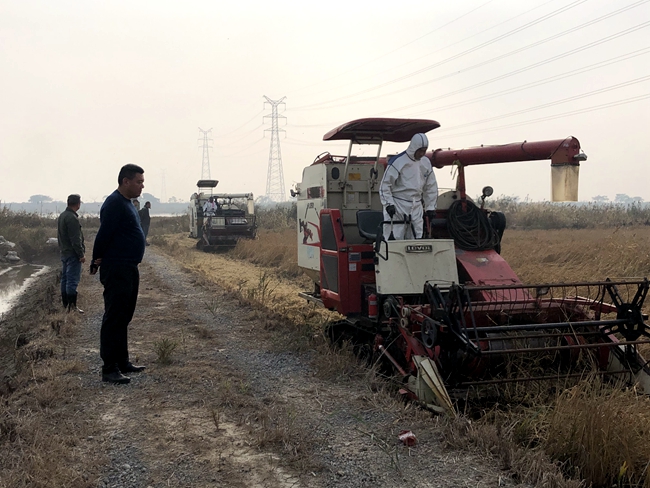 十一月,正是水稻丰收的季节,近日生态种养中心积极抓住天晴有利时机,利用两台收割机加紧对60亩水稻进行收割,确保颗粒归仓。 (严 鑫)