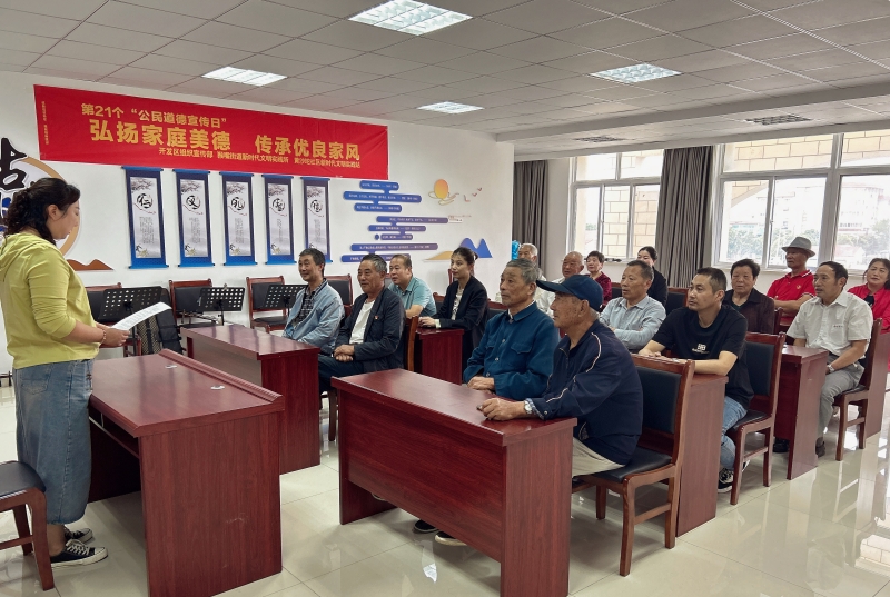 近日,青口投资公司生产生活服务中心、黄沙坨社区共同开展“弘扬家庭美德 传承优良家风”公民道德宣传日活动,宣讲黄沙坨居民“江苏好人”姚锡田好人事迹,着力提升职工群众的文明素质。(田盛楠)