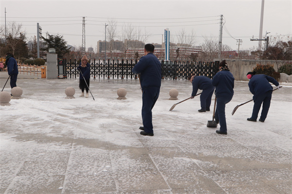 为积极应对冰雪天气带来的不利影响,服务职工出行安全,22日上午,公司组织党员志愿者开展铲冰扫雪志愿服务活动。