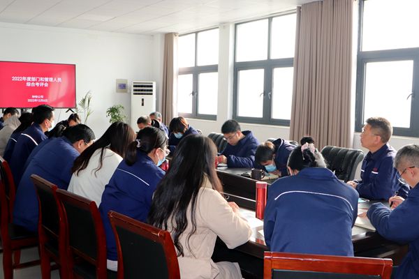 12月6日下午,公司召开2022年度部门及管理人员综合考评会议,公司领导班子成员及全体管理人员参会,会议由党支部副书记袁忠主持。