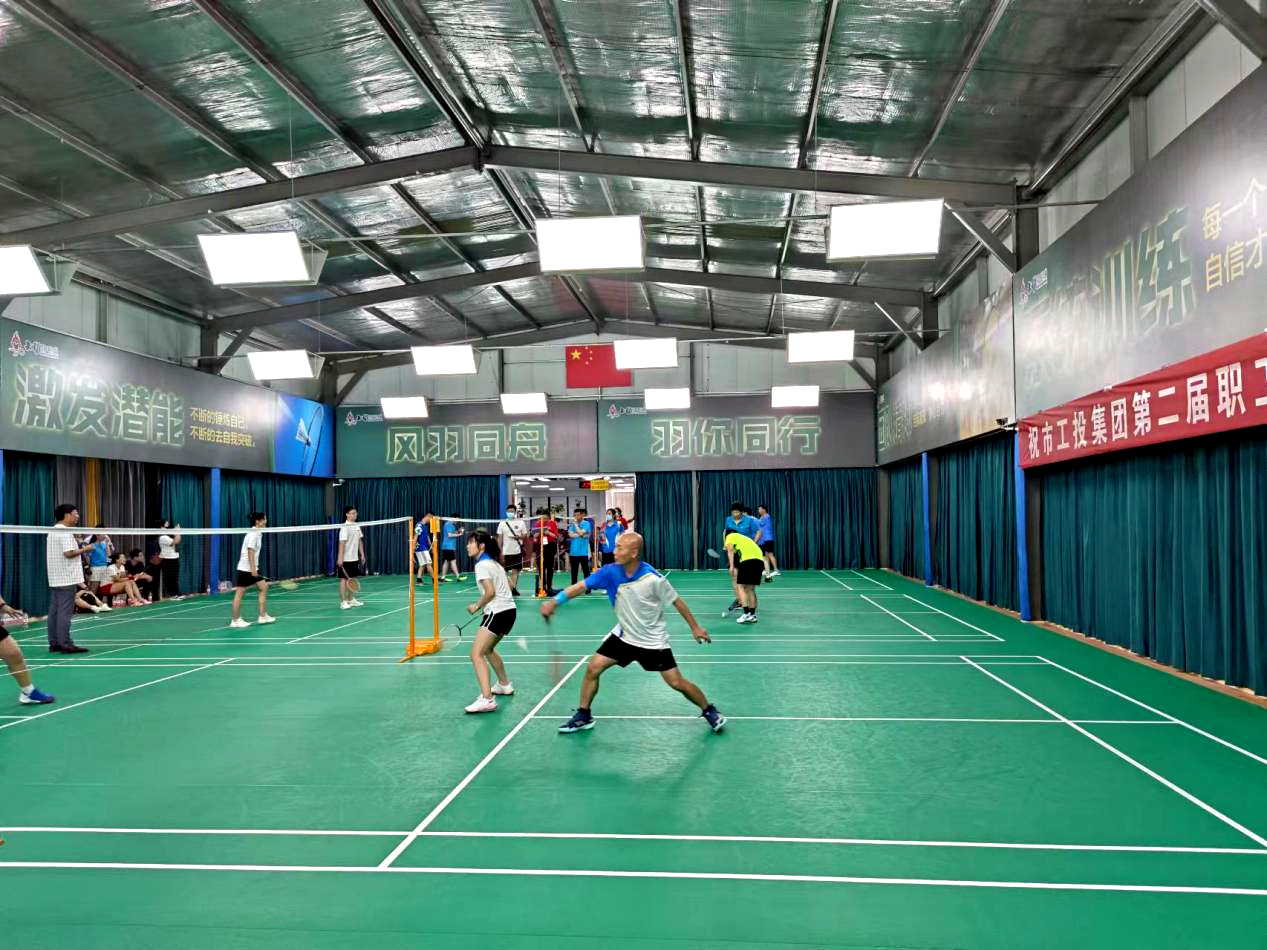 6月26日上午,工投集团第二届职工羽毛球联谊赛在连云港市大圣羽毛球馆拉开帷幕,该项赛事由我公司承办,来自集团机关及权属单位的13支代表队参加了比赛。集团工会主席戴鸿鸣出席开幕式,公司党支部书记、总经理韩立新致开幕词。
