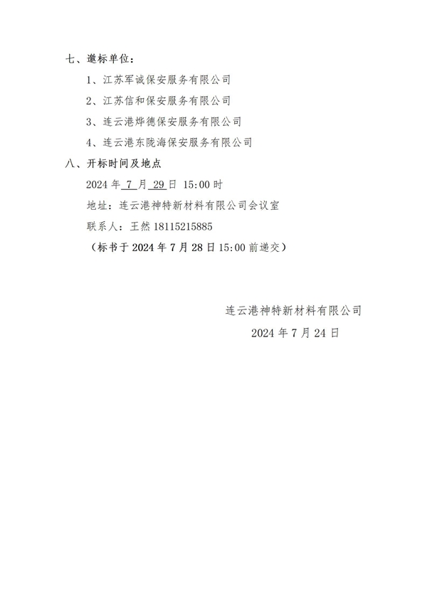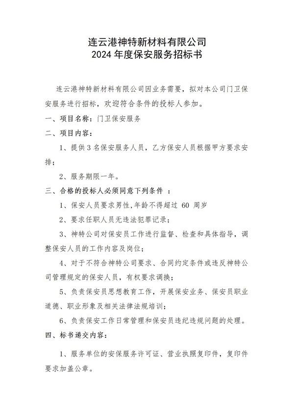 神特公司2024年保安服务邀请招标公告