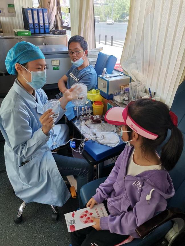 我的女儿很好奇,左瞅瞅右看看,我刚提醒她上面不能乱走,护士却说,“没关系,有什么不懂的可以问我。”。于是,瞬间打开了她心中的“十万个为什么”,她一会问问血液为什么是红色的,一会问问这个设备是做什么的,后来问道小本子上那些字母干什么,为什么有的要画一下?我们都给问蒙了,后来才想到她看过我十年前的献血本,上面有血型勾选的;护士可能也是工作几年的,不好意思的说,“我没见过那样的”。十几分钟的献血很快就结束了,但是她们的对话仍在持续,直到又有人上来了,才依依不舍的和护士姐姐再见,跟着我们一起离开。