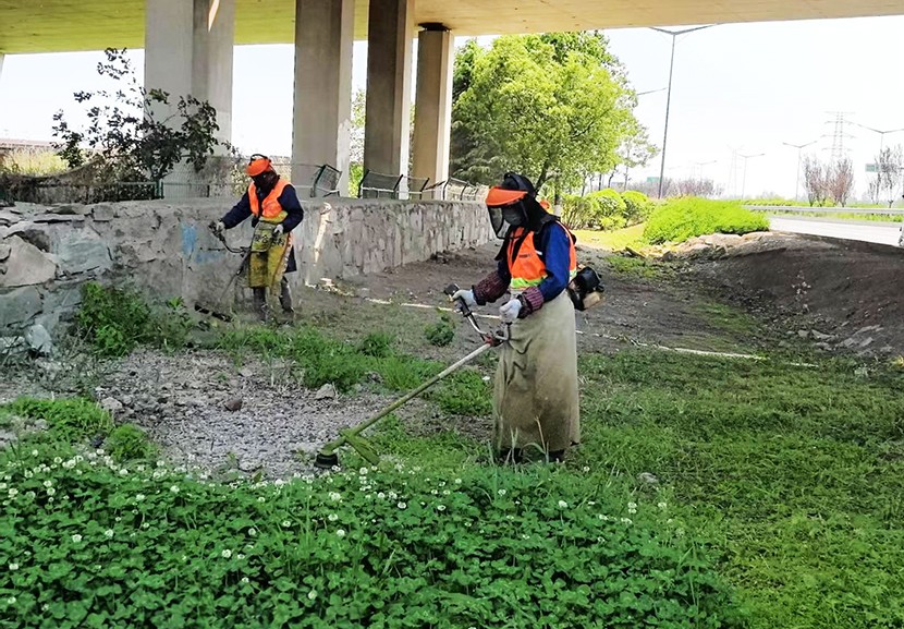 五一期间现场一片繁忙景象。养护工人们采取错峰作业,避开交通高峰,手持高压水枪 ,对辖区东方大道、汇晶路、顾圩路两侧新栽植的苗木进行精准浇灌,确保新栽苗木存活率;东方大道养护班在孙班长的带领下,对东方大道中央隔离带内进行补植麦冬,采取覆盖遮阳网等措施,以减少水分蒸发和避免阳光灼伤。同时充分利用雨后土壤松软,组织工人对辖区绿化带内的杂草、杂树进行清除。