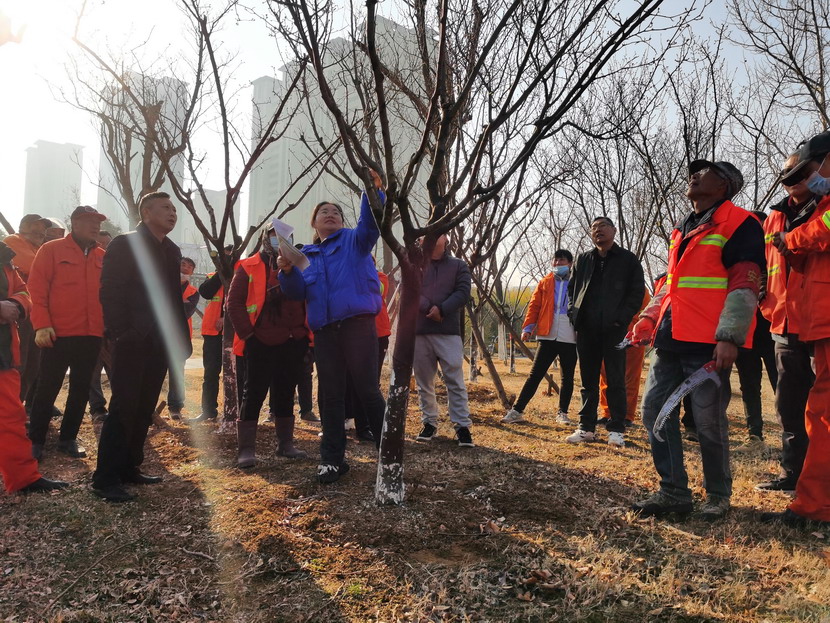 3月15日,工会联合综合管理部在新光路和创智绿园内开展铺设道砖、花灌木修剪、打水围现场理论讲解和实操培训。