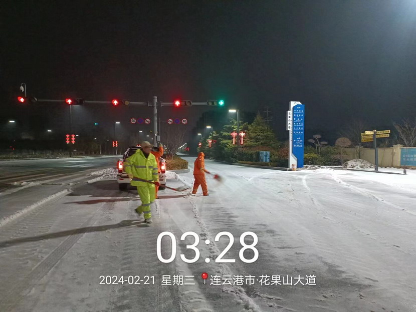 2月20日晚,港城迎来了新一轮大范围降雪,大部分地区出现冻雨伴冰粒天气。为保障群众出行安全,益丰园林分公司以雪为令,副经理孙杰带领徐明磊、樊如军、朱文健3名党员同志迅速反应,快速出击,身披“橘”甲,浴“雪”奋战。傍晚6点开始,从新光路涵洞区域到花果山大道东侧,先锋大桥至黄海大道区域,再到东方续道至大港东路路段,4名同志不分昼夜,连续奋战,不间断巡查,发现积雪立即铲除,及时消除道路安全隐患,共计撒布融雪剂8余吨,积雪清理成效明显,为周边群众出行开辟出一条“温暖平安路”。