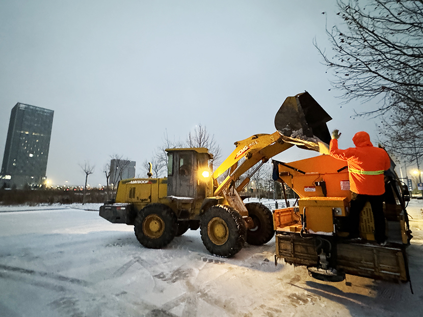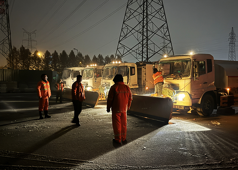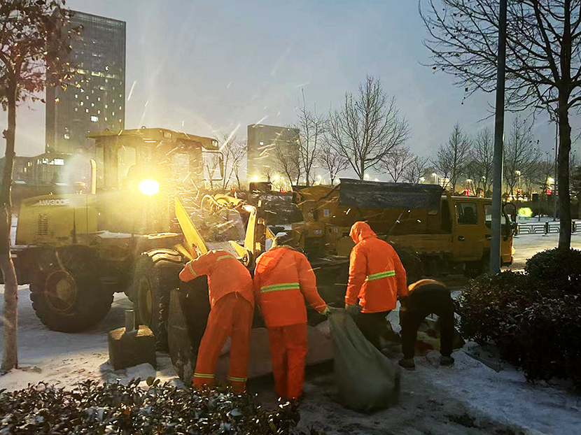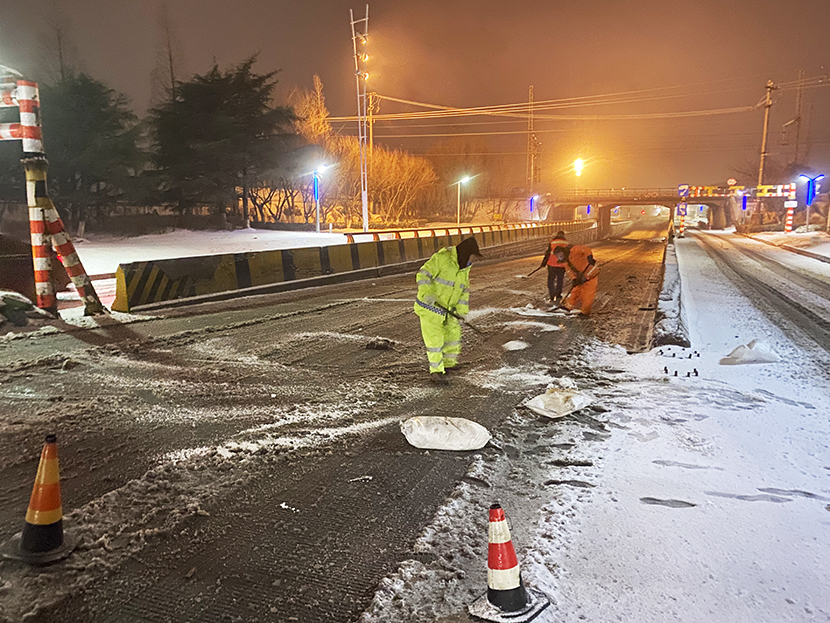 环卫分公司、盛达市政分公司昼夜奋战,清雪除冰,共出动人员160余人次,大型机械车辆6架,将辖区交叉路口、重要地段及桥面、立交坡路等处的冰雪全部清理干净,确保过往车辆行人的交通安全。