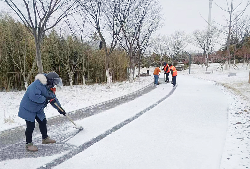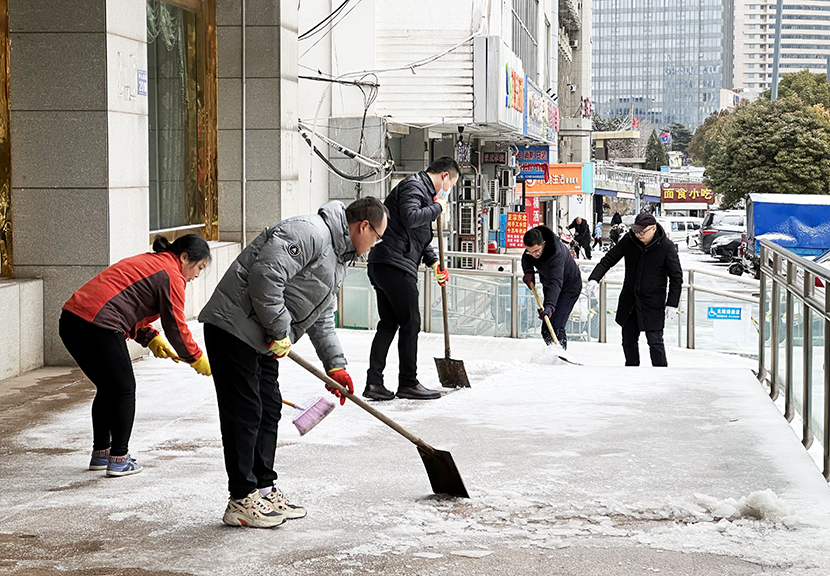 机关管理人员全员出动,与东园社区联动,扫除街边、道路、小区、商铺等门前积雪,确保周边居民出行安全。