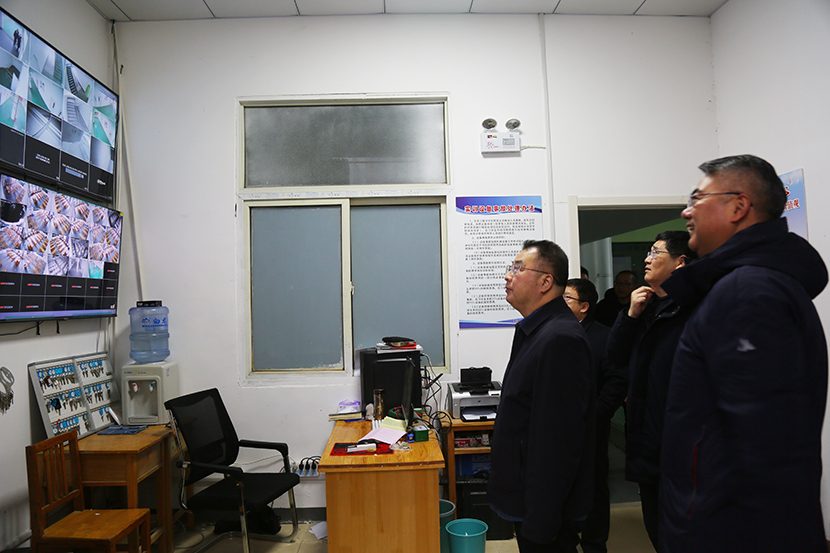 1月31日下午,集团公司党委副书记戴鸿鸣安全检查组一行,冒雨到投资公司开展节前安全检查,公司党委书记、董事长、总经理王德志,安环部部长李明等陪同检查。