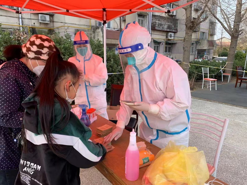 然而随着疫情越发严重,小区核酸检测员人手又紧张了起来,“我可以,这几天我都学会了,最基本的我都会”秦英又是第一个举手到最前线。这下她更忙了,每天凌晨三点起床做饭,五点社区报到,一直坚守到晚上八点。为了节省防护服,她一般都要等到中午2点多钟才休息吃饭,这股毅力让社区、街道领导看在眼里,服在心上,连一直牢骚怪话的几个群众也为她由衷地竖起大拇指。