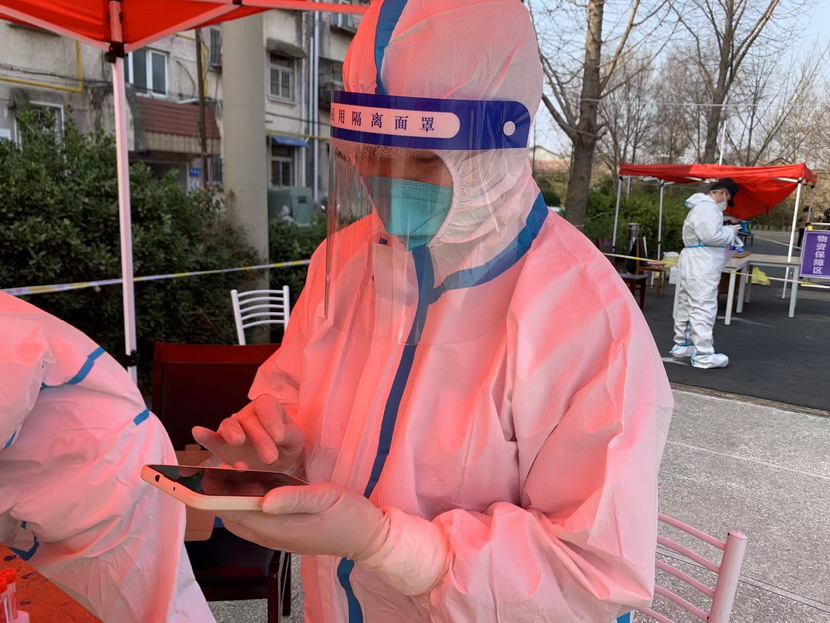 ▲ 海州区幸福路街道防疫主力队员—秦英